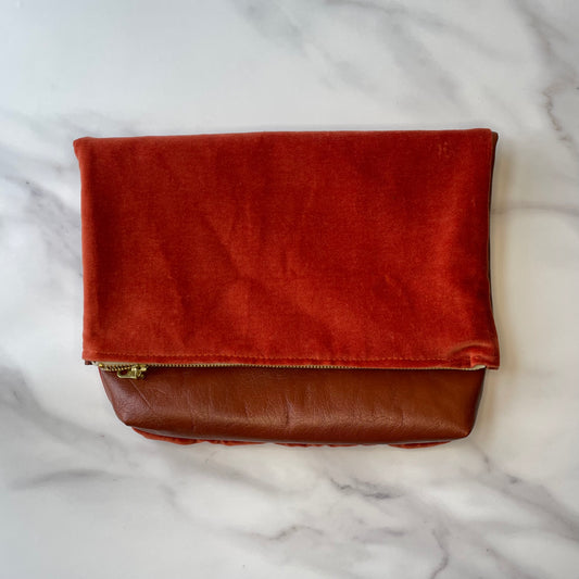 Foldover Clutch: Rust Suede / Rust Velvet