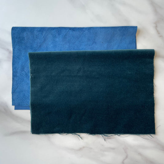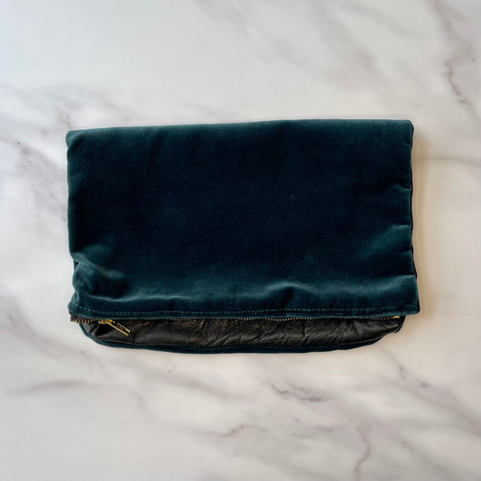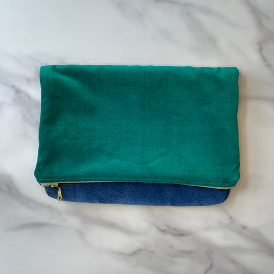 Foldover Clutch: Blue Suede / Forest Green Velvet