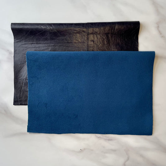 Foldover Clutch: Navy Blue Leather / Blue Velvet