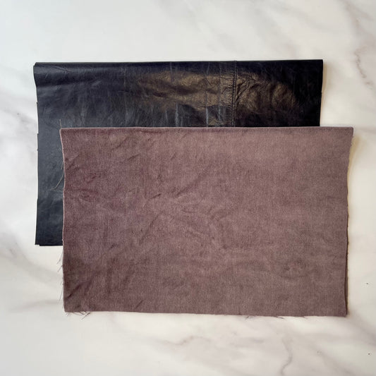 Foldover Clutch: Navy Blue Leather / Vintage Lilac Velvet