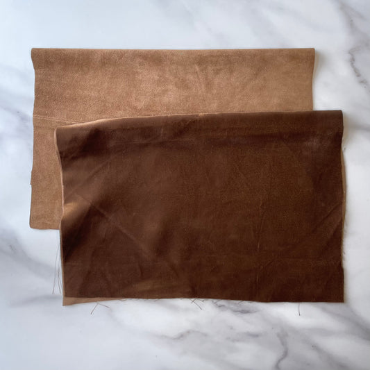 Foldover Clutch: Light Brown Suede / Brown Velvet