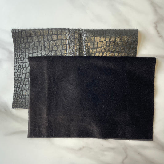 Foldover Clutch: Black Embossed Leather / Black Velvet