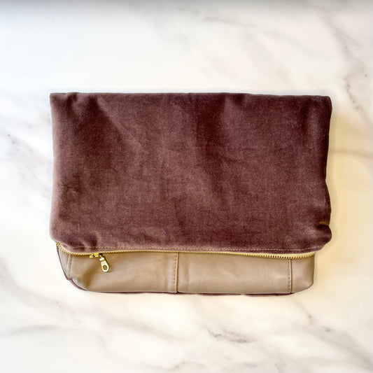 Foldover Clutch: Taupe Leather / Vintage Lilac Velvet