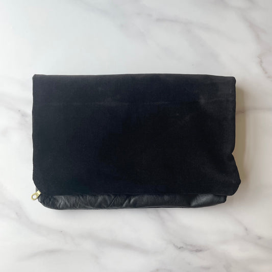 Foldover Clutch: Black Leather / Black Velvet