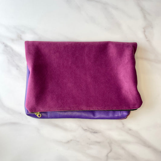 Foldover Clutch: Purple Leather / Raspberry Velvet